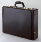 LEATHER ATTACHE CASE Top grain leather attache case expands in depth up to 5" whenever you need it! Full-length document pockets in lid, calculator pocket, pen and card holders. Combination locks. 18x13x4-5" Black. Retail 149.95